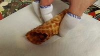 妹咪,看到後眼睛睜大大,開始就是往嘴裏塞