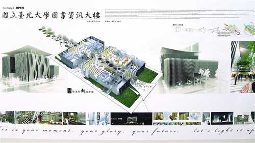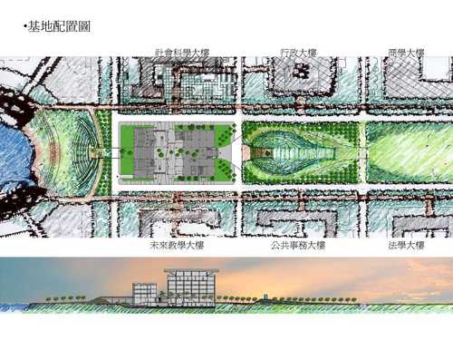國立台北大學預計興建「圖書及資訊大樓」,作為學校中央廣場軸線端點之地標性建築物,內容如下(資料來源:台北大學總務處網頁,網址:http://www.ntpu.edu.tw/admin/a9/org/a9-1/progressreport.php):
