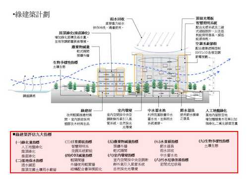 (二)綜合介紹大樓平面、立面、剖面及透視圖。