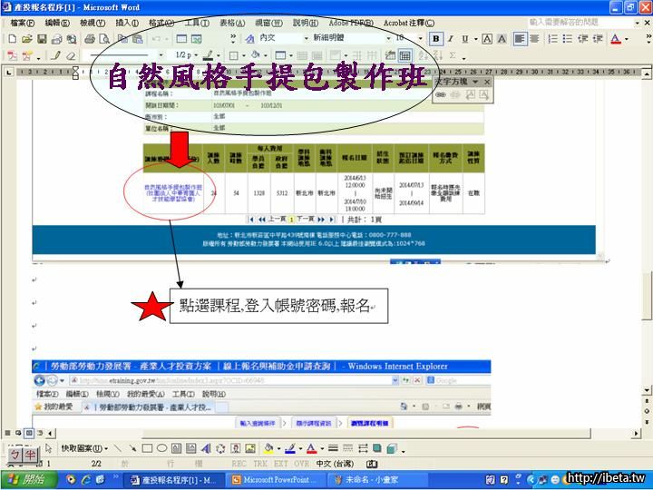 3. 點選(自然風格手提包製作班課程),登入帳號密碼,報名