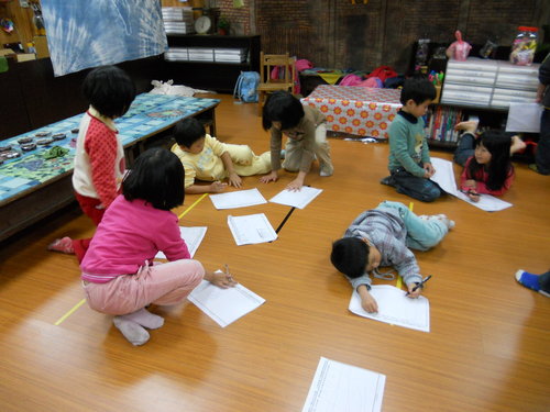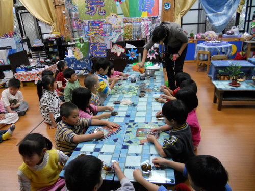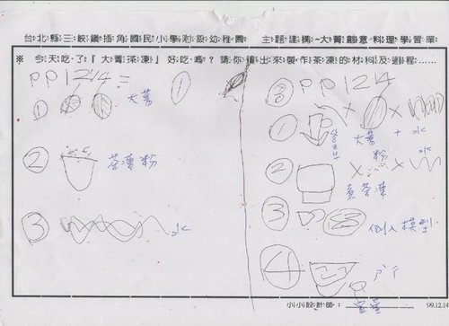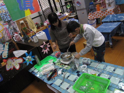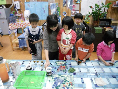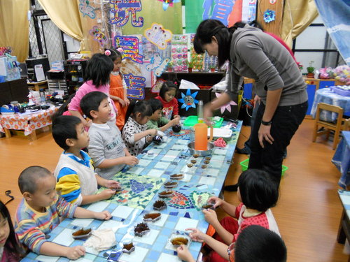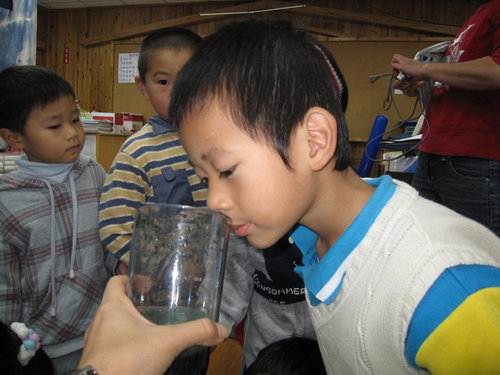 放入大菁時,先讓小朋友聞聞看大菁的味道