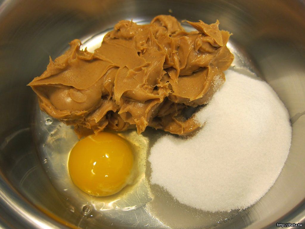 把花生醬、糖、蛋攪拌均勻