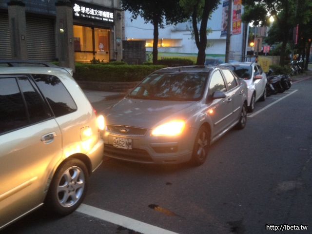 中間那輛我猜他可能等買東西的人回來就走了,但是可以移動一下讓你先走啊! 真是奇怪!