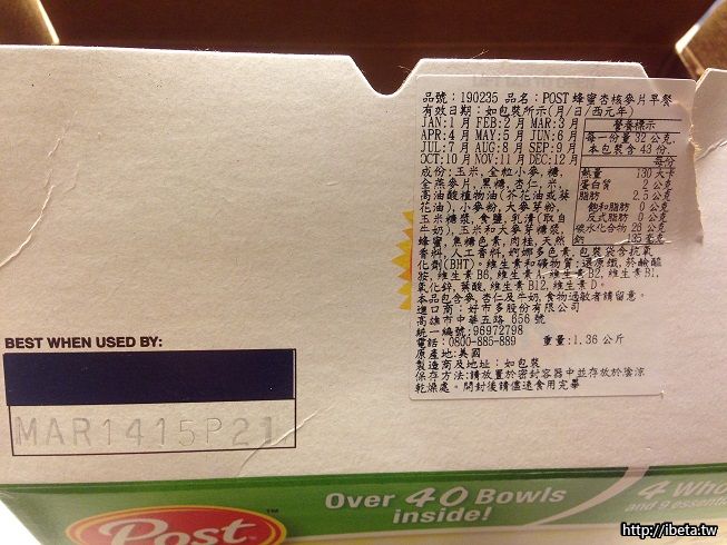 post蜂蜜杏核麥片(140元)--分購1包,效期至2015/3/14