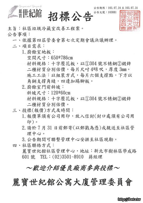 垃圾冷藏室改善工程招標公告
