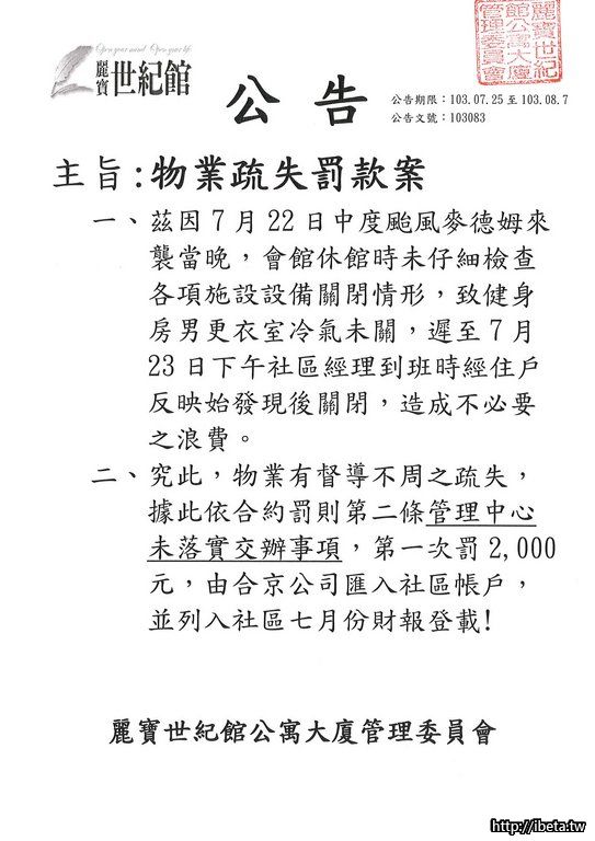 物業疏失罰款案