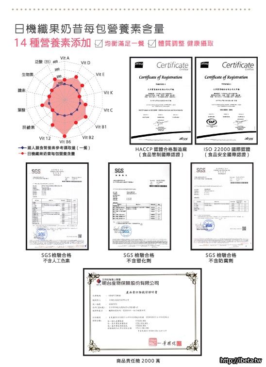 成 份:奶昔包_植物性果膠、水果濃縮汁、砂糖、麥芽糊精、食用香料、14種營養素。藤黃果單包_藤黃果萃取。