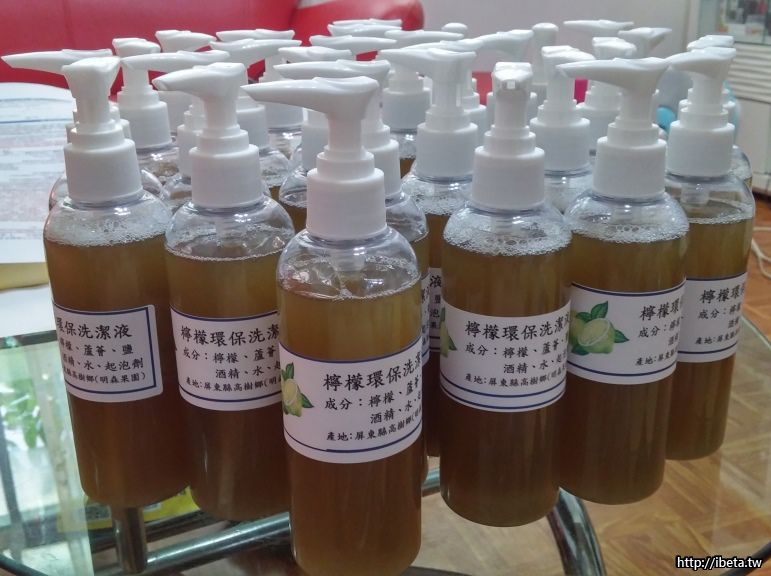 環保洗潔劑成分只有檸檬(整顆檸檬)、蘆薈、酒精、鹽、水、起泡劑,不含其他添加物,可以用來洗衣服、洗碗碟或是拿來洗澡也可以,環保又健康。