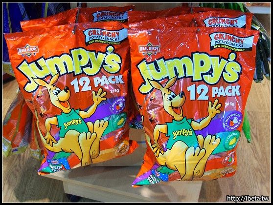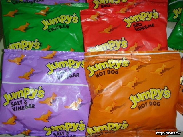 產品特色:熱狗、酸醋、雞汁、BBQ等四種口味,無需搭機到澳洲,就可購買原汁原味3D造型袋鼠洋芋片
