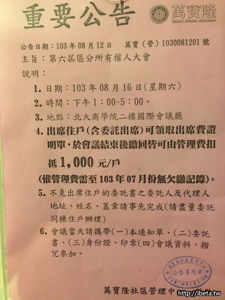 目前會議已經開始,各位區權人或代理人如果有空可以來開會的快點來一起開會吧。