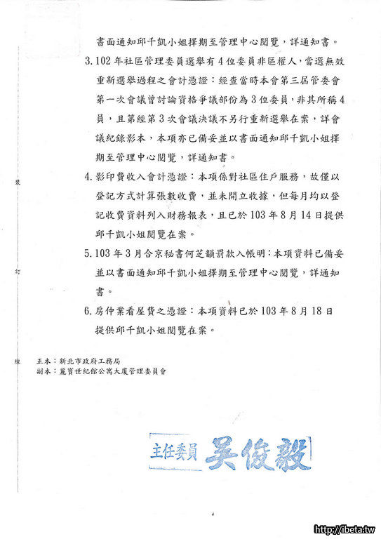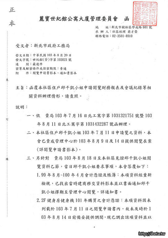 函覆新北市工務局邱千凱小姐申請閱覽案