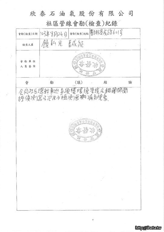 公告103096 欣泰石油氣瓦斯管線檢測事宜