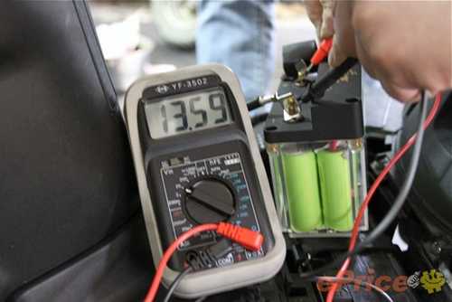 ▲接下來筆者用電表測量放置一個月後的電池電壓,透過這張照片大家可以清楚的看到數據為 13.32 V。