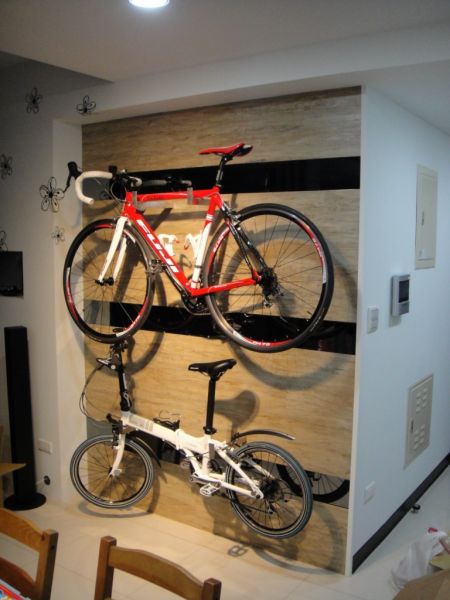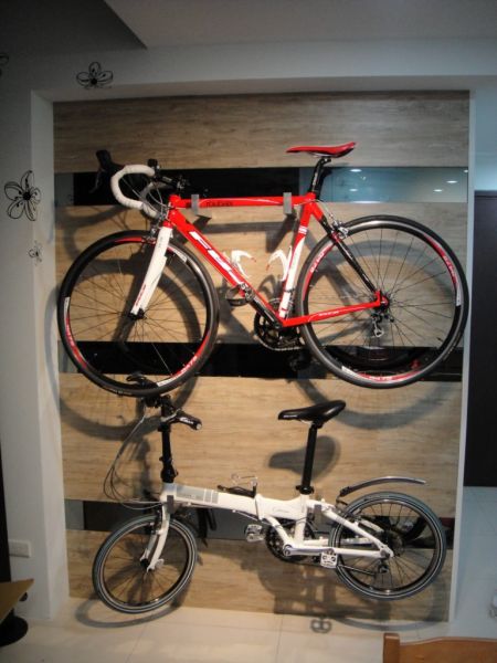 2.腳踏車的家:進門後右轉牆上是腳踏車美美的家!由塑膠地板及灰鏡,外加4隻鐵件所組成!