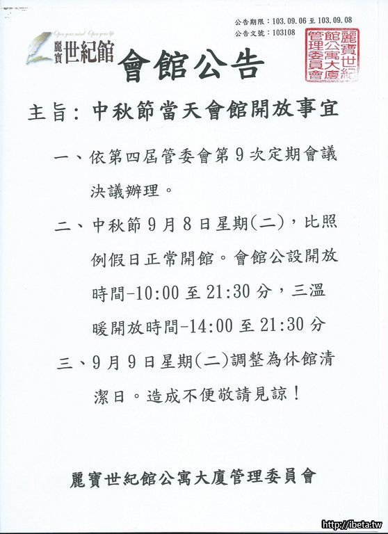 公告103108中秋開放事宜