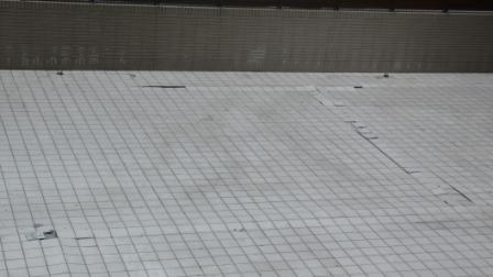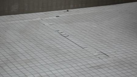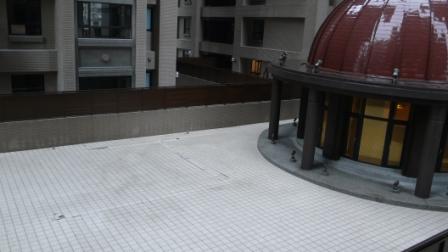 今天到新家察看裝潢進度,往中庭一看,三樓露台地磚嚴重擠壓破損