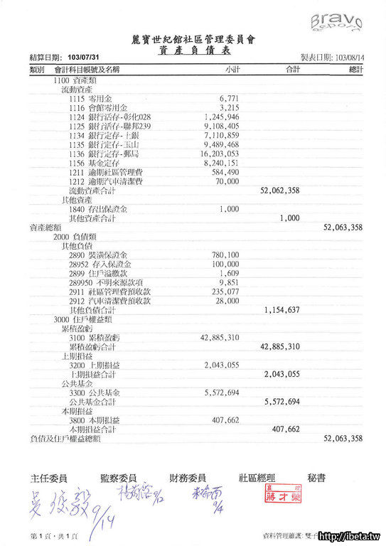 103年7月份財報