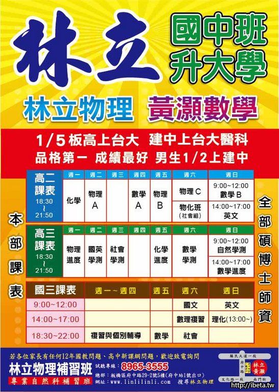 高一奠基班:言仲國文、威浩英文、冠宏數學、林立物理、李杰化學。