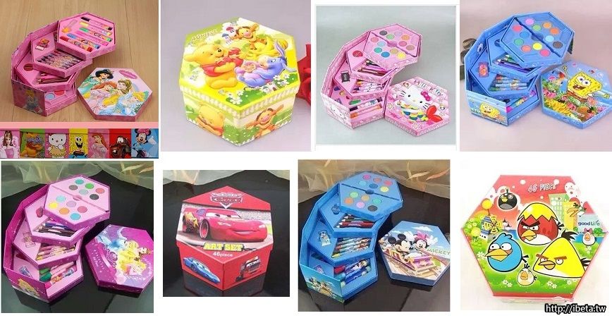 內有:水彩,彩色筆,臘筆.橡皮擦,迴針,水彩粉餅,筆刷.