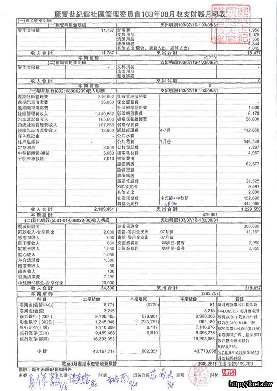 八月份卻把公基金填在備註欄上? 總結餘剩下4300萬?