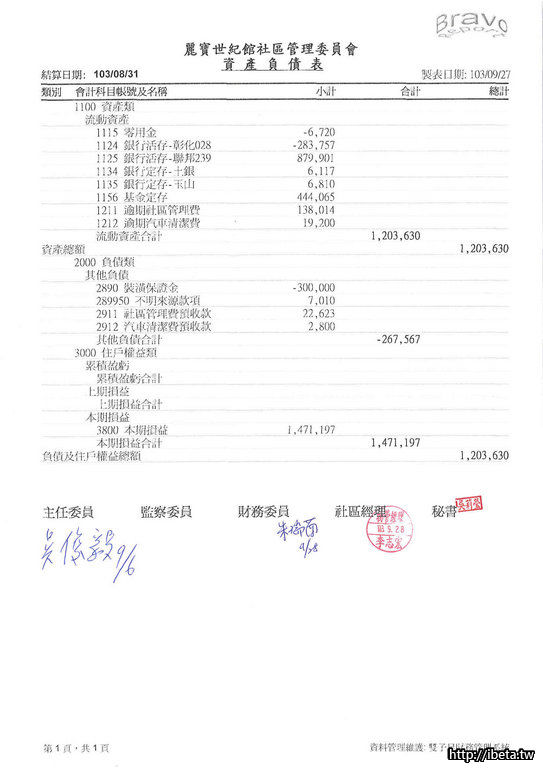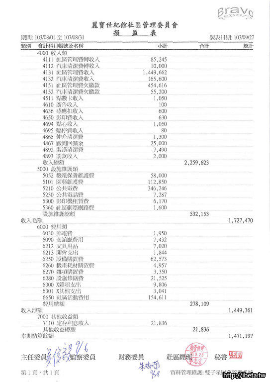 103年8月份財報