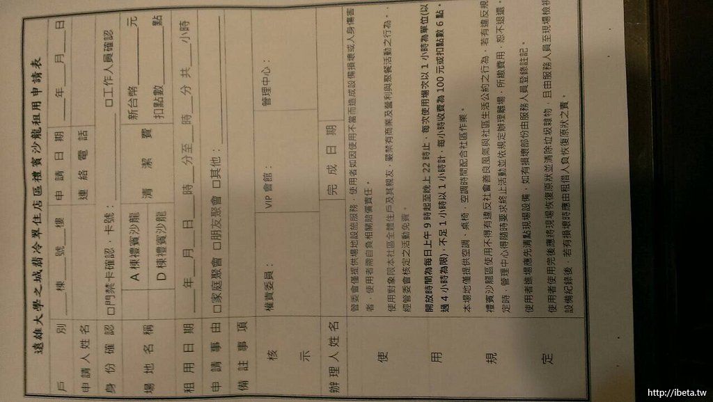 我們翡冷翠的公設使用,相對別的社區已經是低的多了,管委會不想去辦法來鼓勵大家盡量使用公設也就罷了,居然還來這種官僚的事前申請核定制!