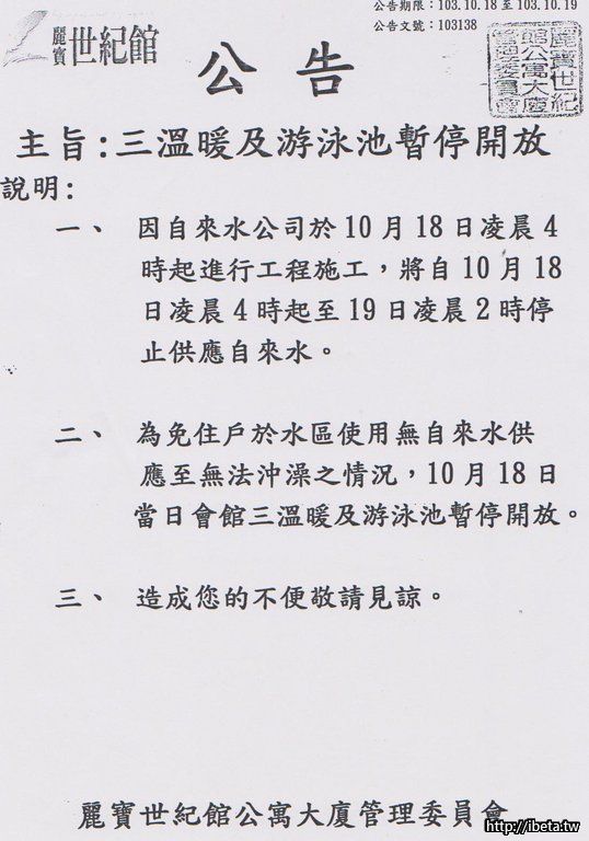 公告103138 停水公告