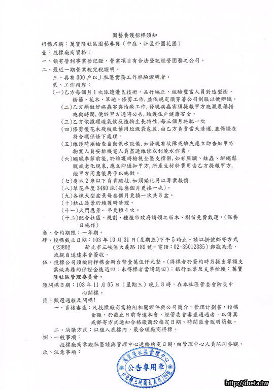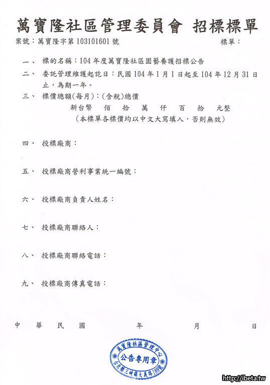 104年度萬寶隆社區園藝養護招標公告
