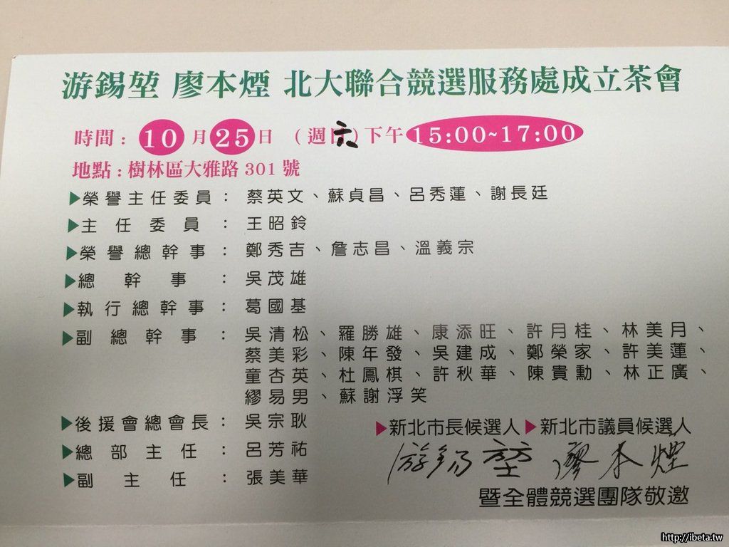 成立茶會時間:10月25日(六)下午15:00