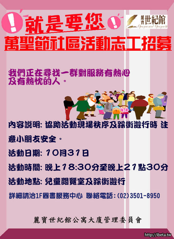 10/31日萬聖節社區活動志工招募