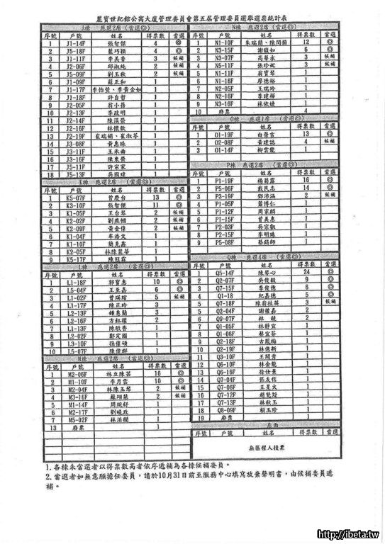公告103143第五屆管理委員當選名單