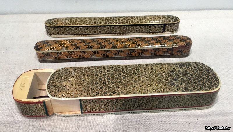 今天參觀一個東方與波斯(伊斯蘭)書法展,新奇的看到很不一樣的筆盒和畫筆。