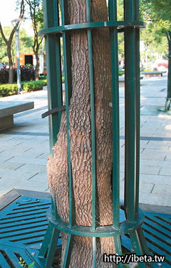 除了阻礙生長,「吃進」鐵柵處的樹皮會有缺口,易遭白蟻、介殼蟲或黴菌侵入,並傳染給健康樹木,情怳嚴重可能集體死株,除非經常噴藥除蟲,否則將影響居民生活品質。