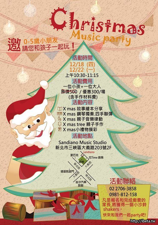 Sandiano 邀您與孩子一起參加(0~5歲) Christmas music party