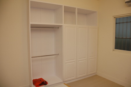 將舊的15年衣櫃改裝烤白安裝系統櫃用的新古典成型門片