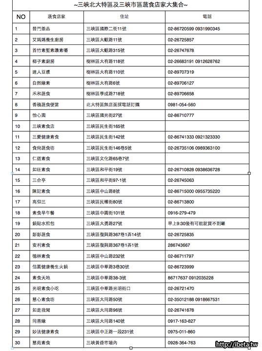 好康報報 ~ 北大特區&三峽市區 蔬食店家 統計表