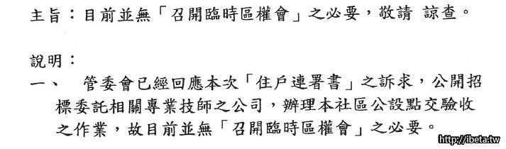 工務局要求管委會說明的舉函