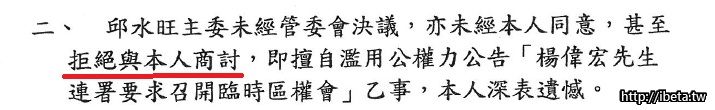 楊偉宏11/6寄存證信函給管委會和邱主委,要求馬上停止教育訓練否則要提告.
