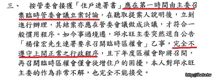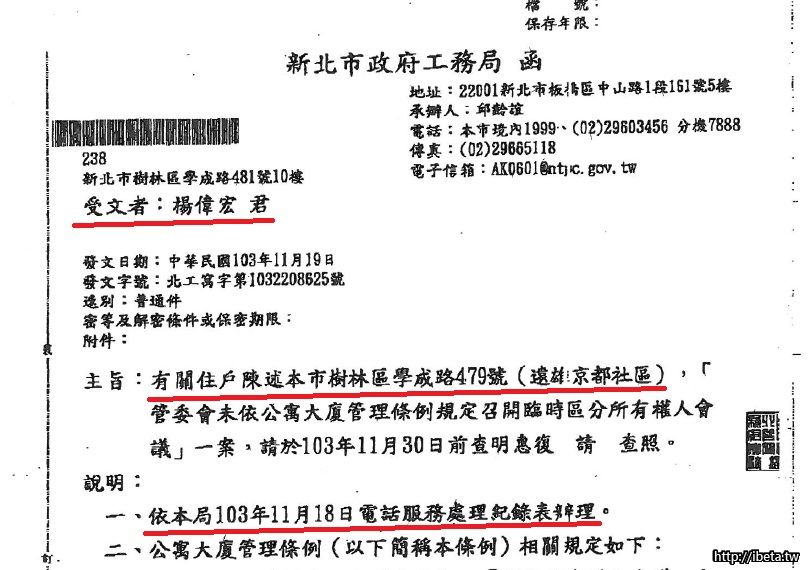 工務局表示若不辦理,要罰款! 現在來說,沒有必要了?? 楊偉宏先生是京都社區皇帝嗎?