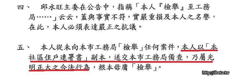 3. 他所說的內容與狀況, 從來就不是一件事實, 倘他仍執意要如此渲染, 認為邱主委欺負他,他也