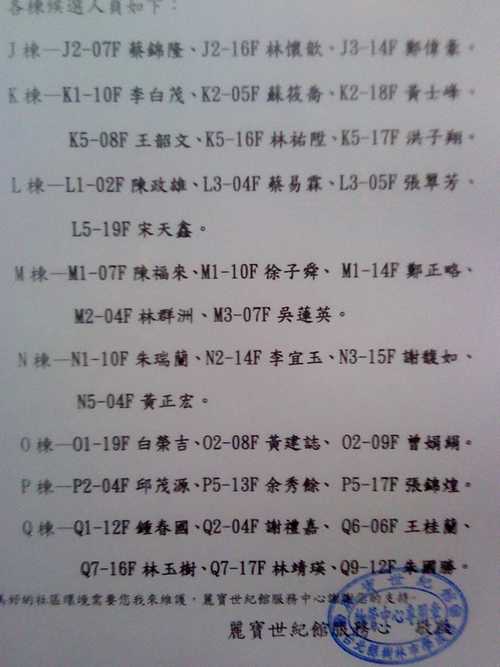 pinkywang 發表於 2011-1-7 20:10 Q棟候選人好多喔 候選人Q7-16F林玉樹是我公公~ 目前退休了