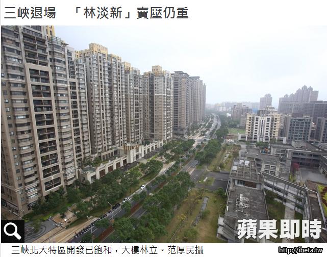 過去市場習慣將林口、三峽、淡水、新莊簡稱「林三淡新」,暗指這些新北市新興重劃區賣壓沉重,但其實三峽早已悄悄退場。據《住展》雜誌統計,近4年三峽地區的案量僅2013年有超過百億元水準,相較其它3區動輒7、800億元的量體簡直小巫見大巫,可售戶數也多半維持在3位數,遠不及其它3區4位數的水準,三峽已正式退出,成為「林淡新」。