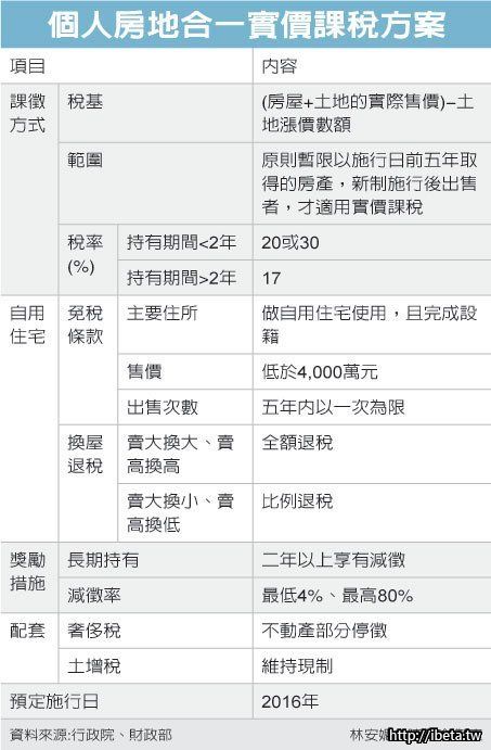 房地合一課稅的施行年度預定為2016年,但納入實價課稅範圍的房產交易,則不會溯及既往,「日出條款」將會保留。