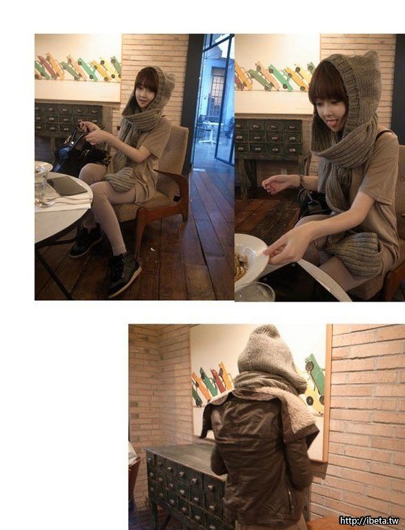 寒冬必備一體成型連帽+圍巾