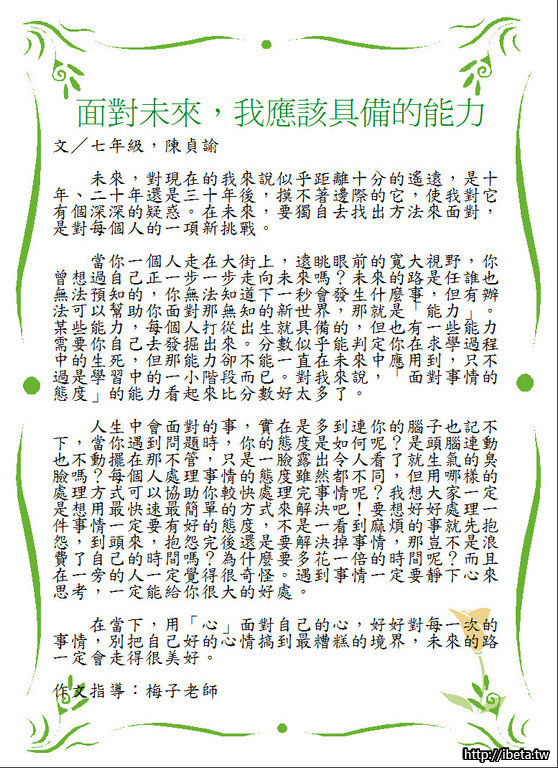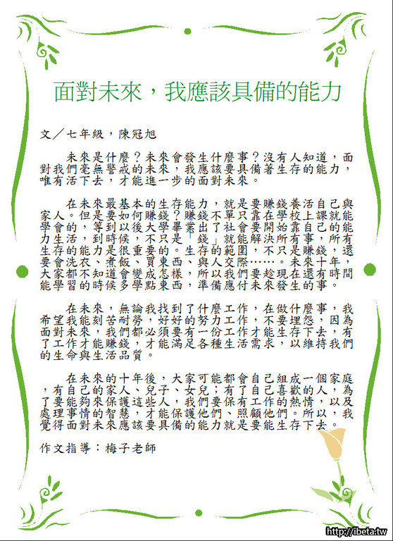 當國中會考的腳步近了,他可以更優游自在地複習學科,不再為作文煩惱。