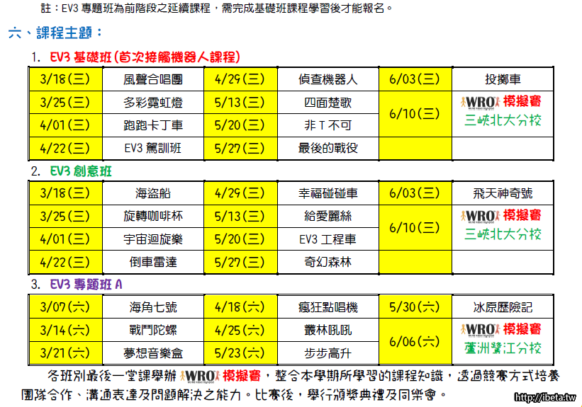 [LEGO&MPM]創意樂高機器人103學年下學期課程時間表