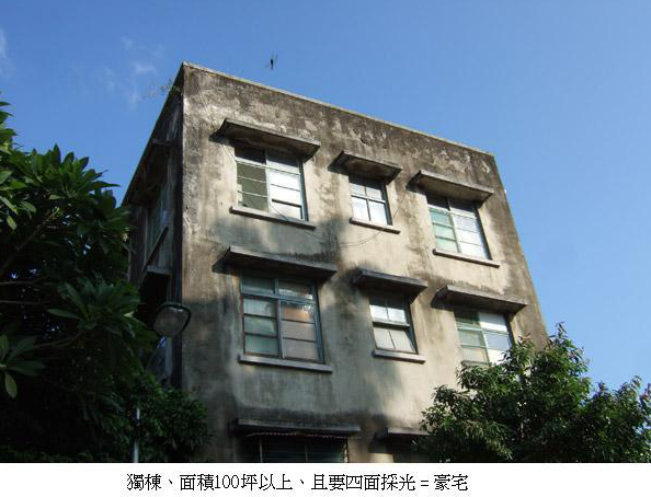 7月1日起台北市將開徵豪宅稅,可是課徵豪宅稅的豪宅,有嚴格定義,條件是:必須是獨棟、面積100坪以上、且要四面採光等,估計台北市只有1萬多戶,會開徵豪宅稅,但帝寶並不在課徵之列。