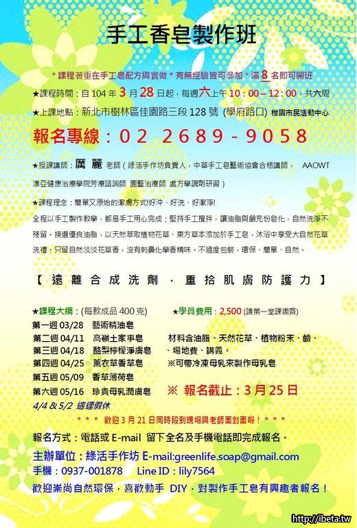 主辦單位:綠活手作坊E-mail:greenlife.soap@gmail.com