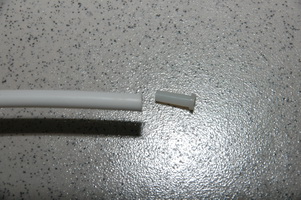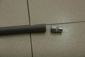 如圖將套桶放入4分塑膠管喇叭口後塞緊即成為好用的自制工具(常用者可以請人焊接在不鏽鋼管上)