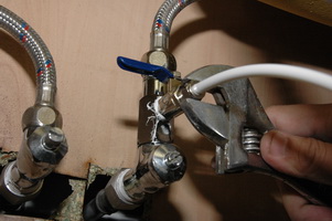 2.因應鎖卸龍頭固定銅柱螺絲十分困難..請買一個12號的套桶及一支4分塑膠管(只取有喇叭口的那一側40公分)